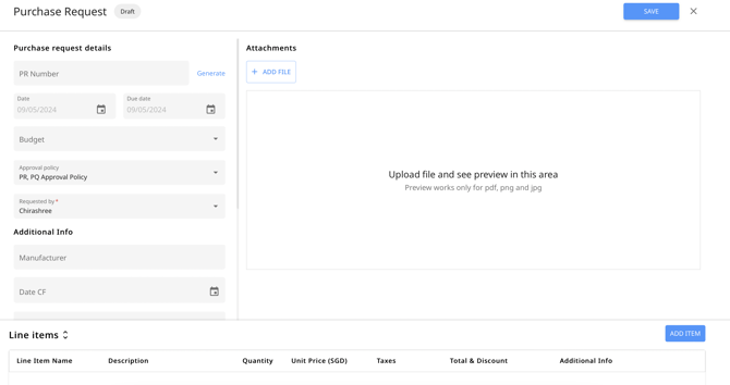 Learn more about how to create PRs: How to create a purchase request and send it for approval?