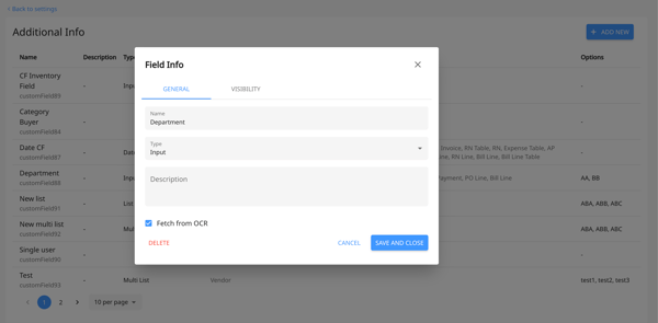 1. Go to "Settings" and click on "Custom Fields" under the "Payables" section.