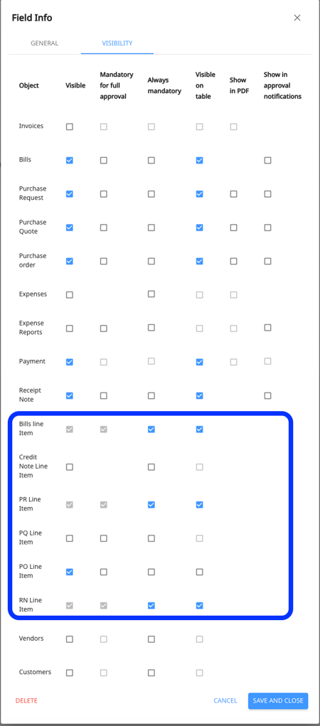 - Visible – The custom field will be displayed to users wherever line item details are shown.