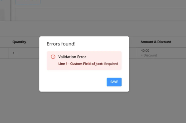 8. An error message will be highlighted upon saving if a mandatory custom field is left incomplete.